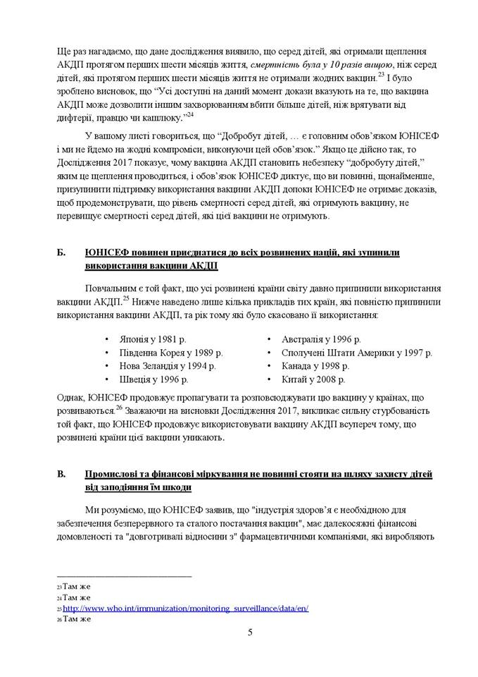 Листування ICAN та ЮНІСЕФ щодо щеплень з цільноклітинним кашлюковим компонентом