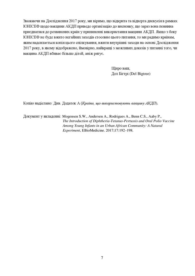 Листування ICAN та ЮНІСЕФ щодо щеплень з цільноклітинним кашлюковим компонентом