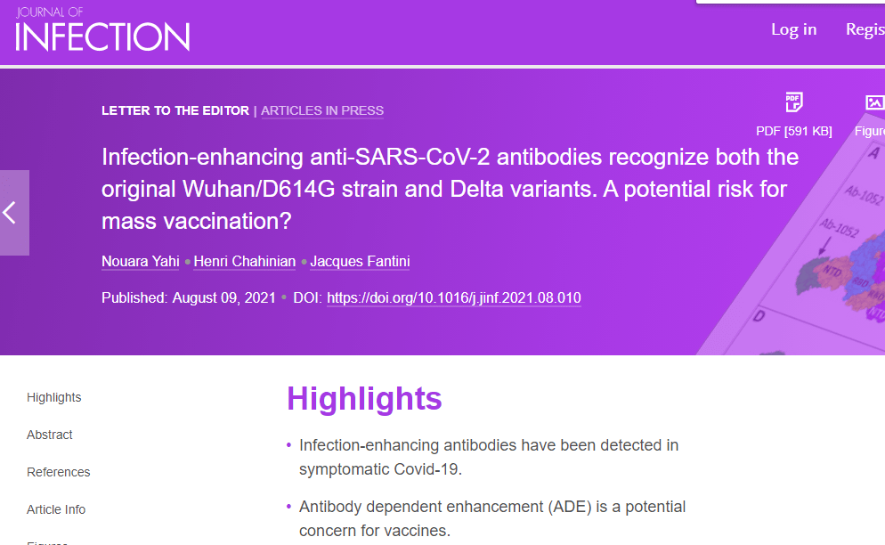 “Залежне від антитіл посилення інфекції (ADE) – це питання безпеки вакцинної стратегії. У нещодавній публікації Лі та ін. (Cell, 184: 4203–4219, 2021) повідомляли, що антитіла, що посилюють інфекцію, спрямовані проти N-кінцевого домену (NTD) білка-шипа SARS-CoV-2, сприяють вірусній інфекції in vitro, але не in vivo.